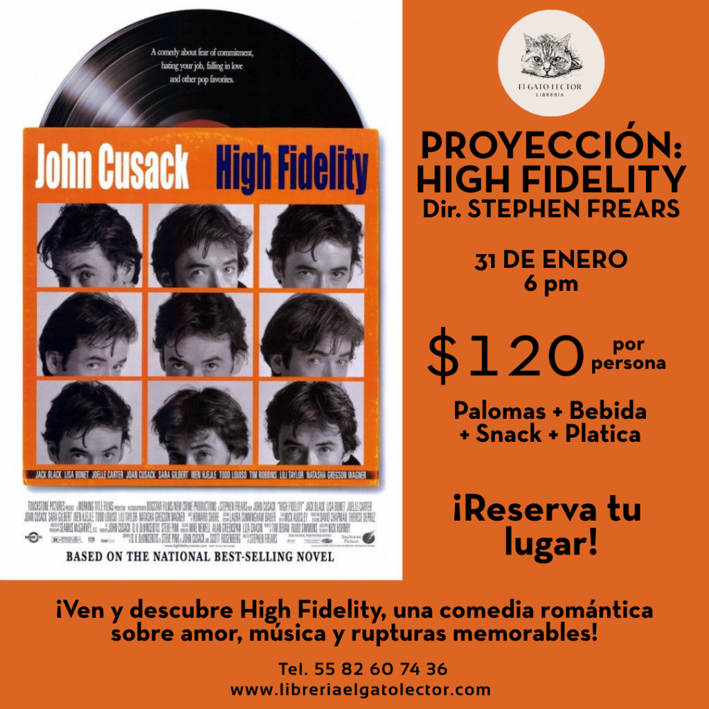 Este sábado 31 de enero proyectaremos High Fidelity (2000), la icónica adaptación de la novela de Nick Hornby, dirigida por Stephen Frears y protagonizada por John Cusack, Jack Black e Iben Hjejle. Una película de comedia romántica, sobre listas interminable de amores fallidos, música como refugio emocional y la dificultad de crecer cuando uno prefiere quedarse repitiendo el mismo disco.