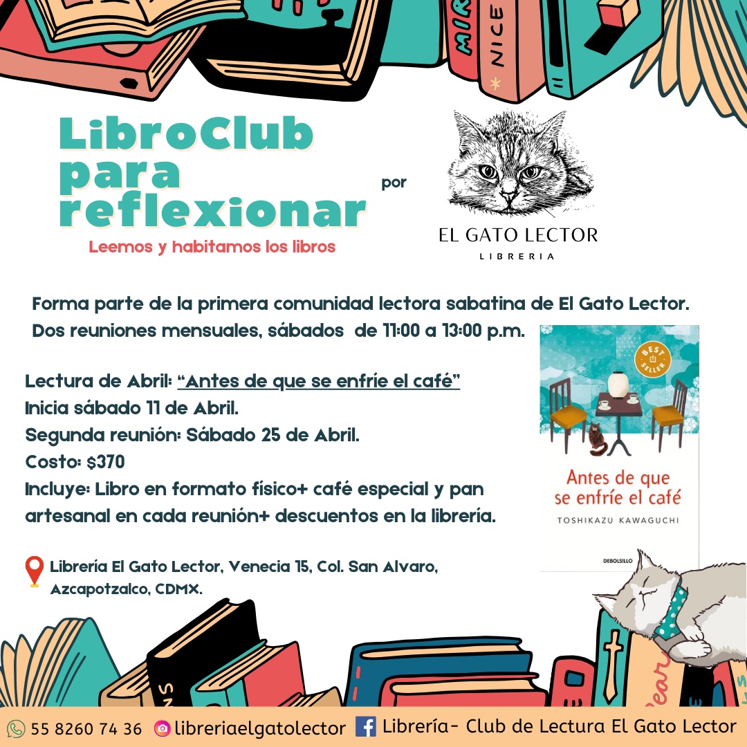 En El Gato Lector Librería estamos muy emocionados por invitarles a formar parte de nuestra primera comunidad lectora sabatina: el LibroClub para reflexionar.